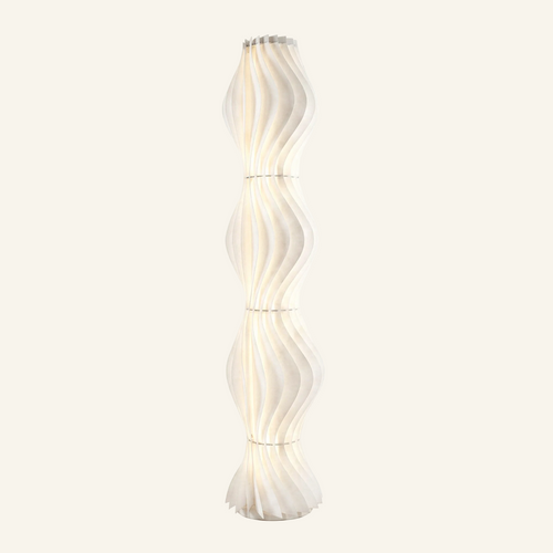 Tiered White Floor Lamp with Sculptural Skirt Shade
